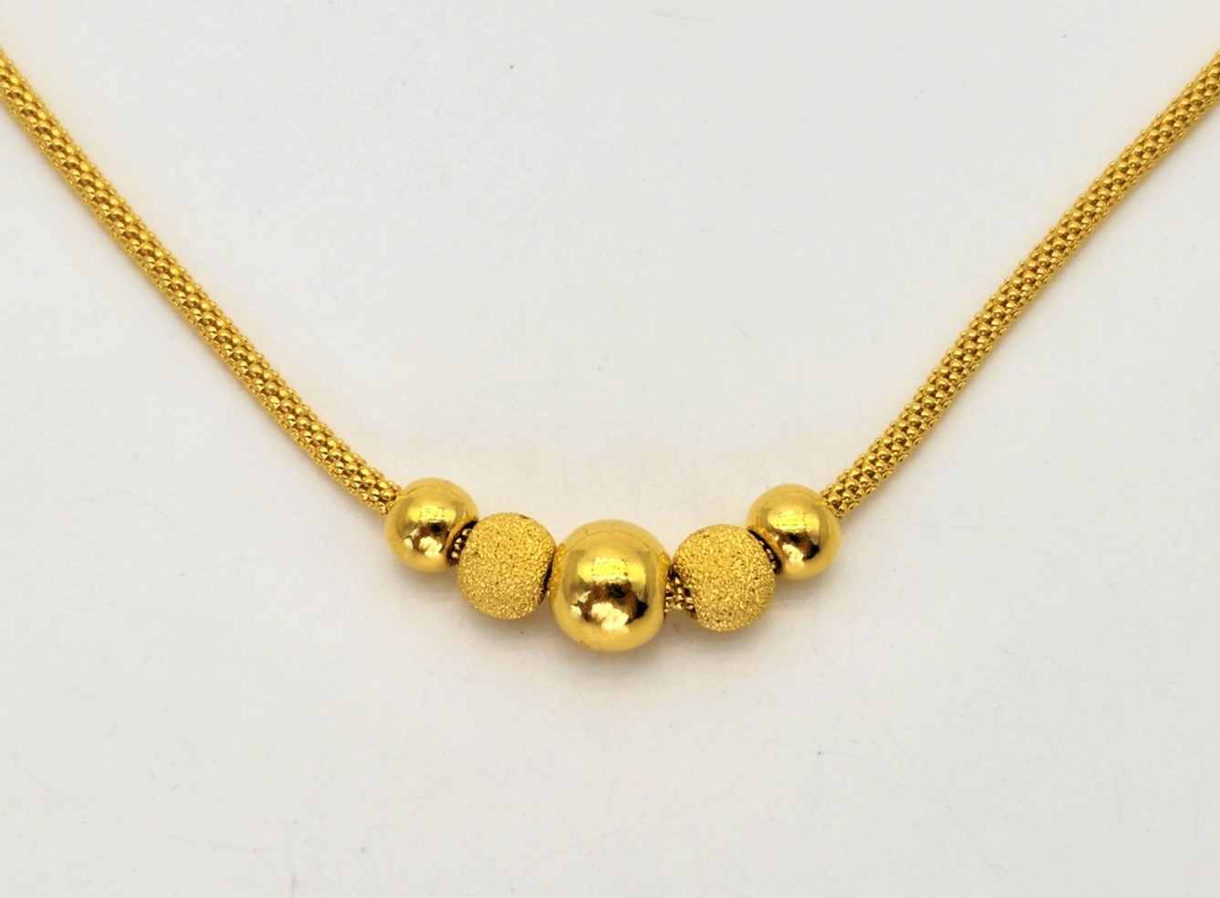 5개의 공 장식을 포인트로 세팅하면서 전체적으로 여성스러우면서 은은하게 고급스러움이 느껴지는 제품으로 완성된 제품입니다. 최소 순금 3돈부터 제작이 가능한 제품입니다. 조금더 캐주얼한 느낌을 원하시면 순금 3돈 중량도 추천드리며, 고급스러움을 강조하고 싶다 하시면 오늘 준비한 순금 5돈 중량이 맞으실 거예요ㅎㅎ