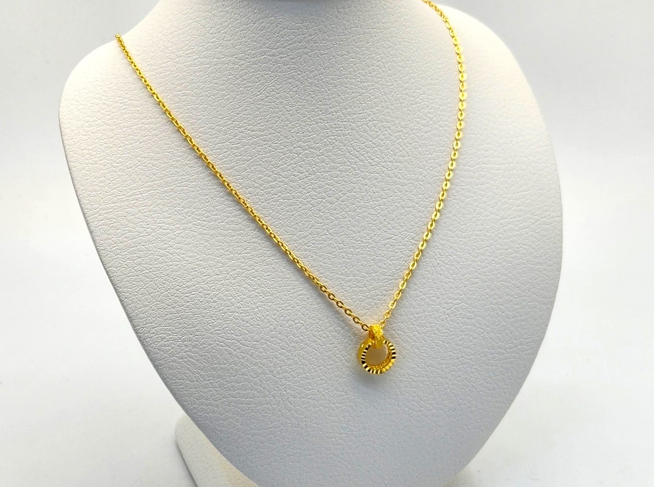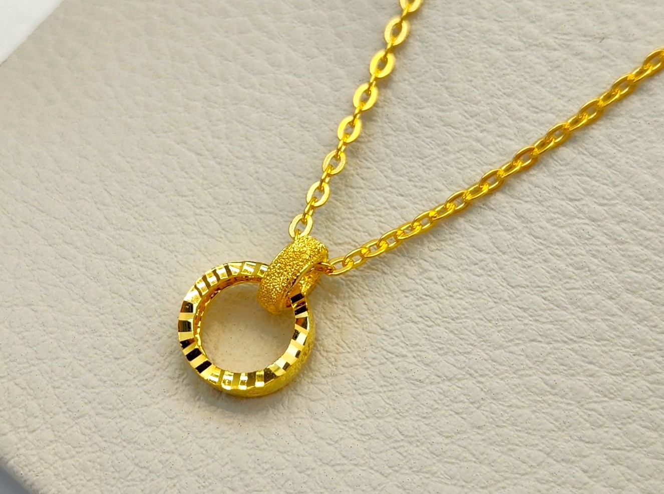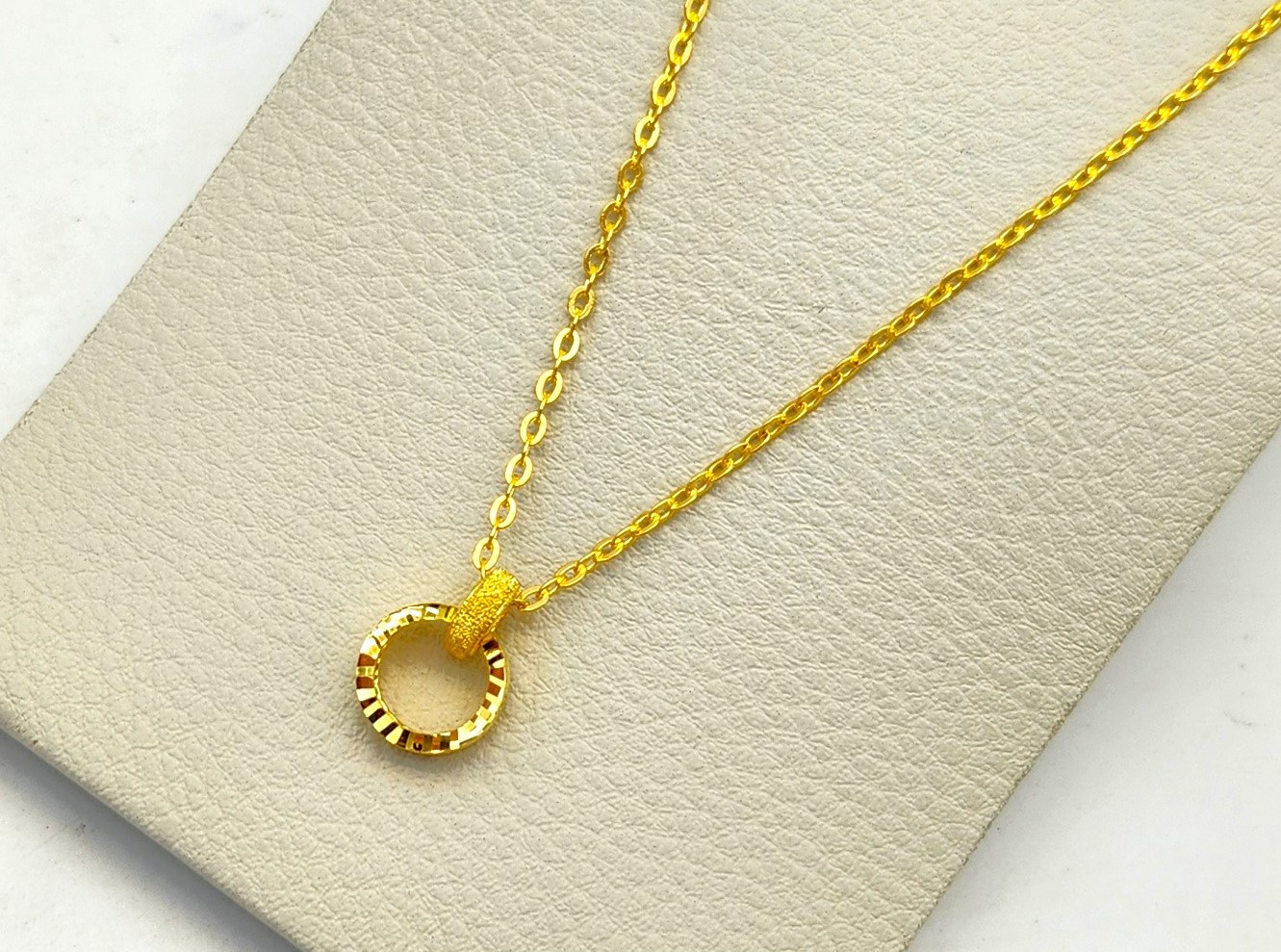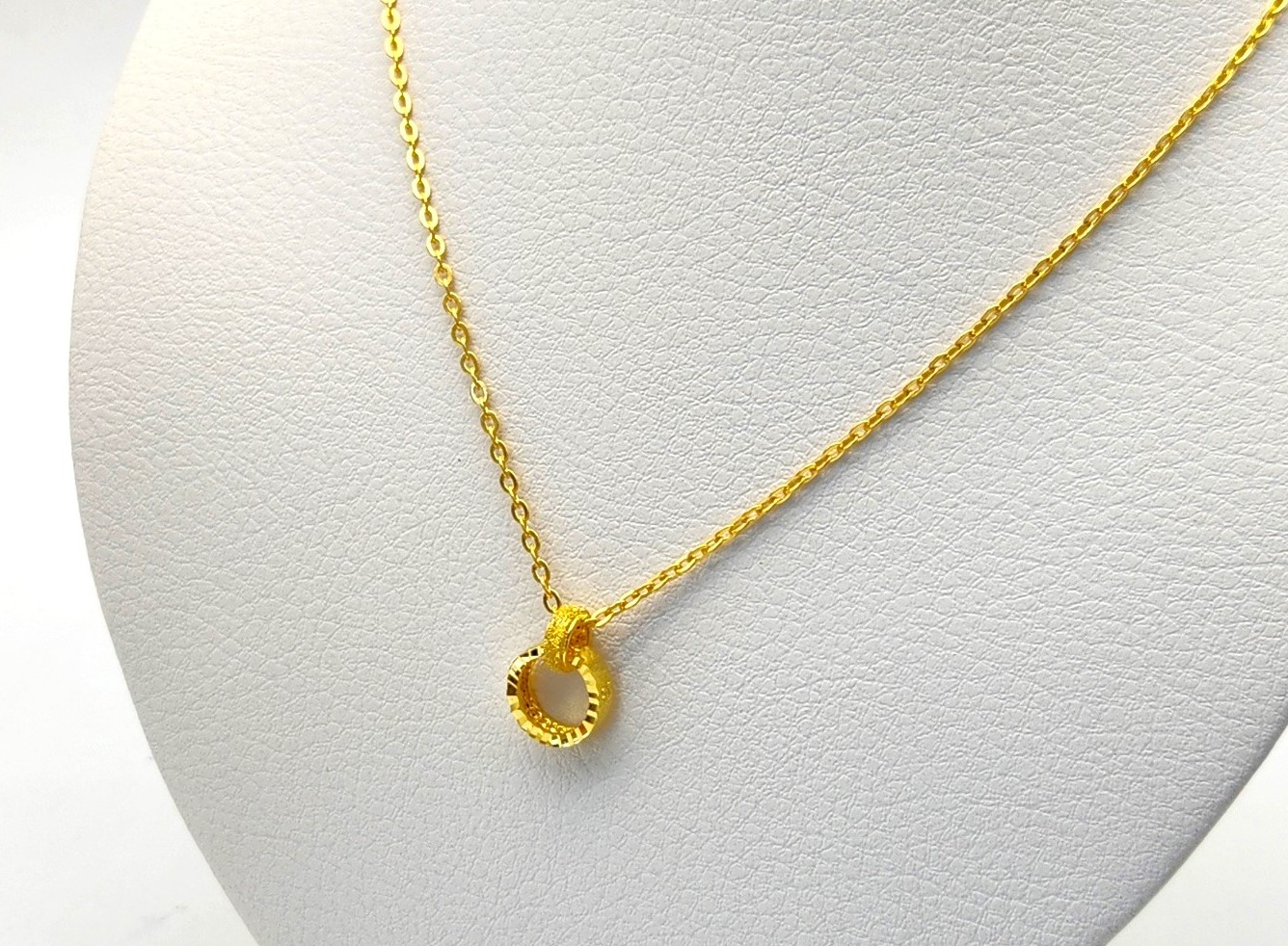 펜던트 장식이 매력적인 순금 목걸이입니다. 펜던트의 경우 목걸이 줄이랑 일체형 디자인으로 조금 더 캐주얼하면서 일상에서 포인트로 데일리 한 느낌으로 연출하기 안성맞춤인 순금 목걸이라고 할 수 있겠어요ㅎㅎ