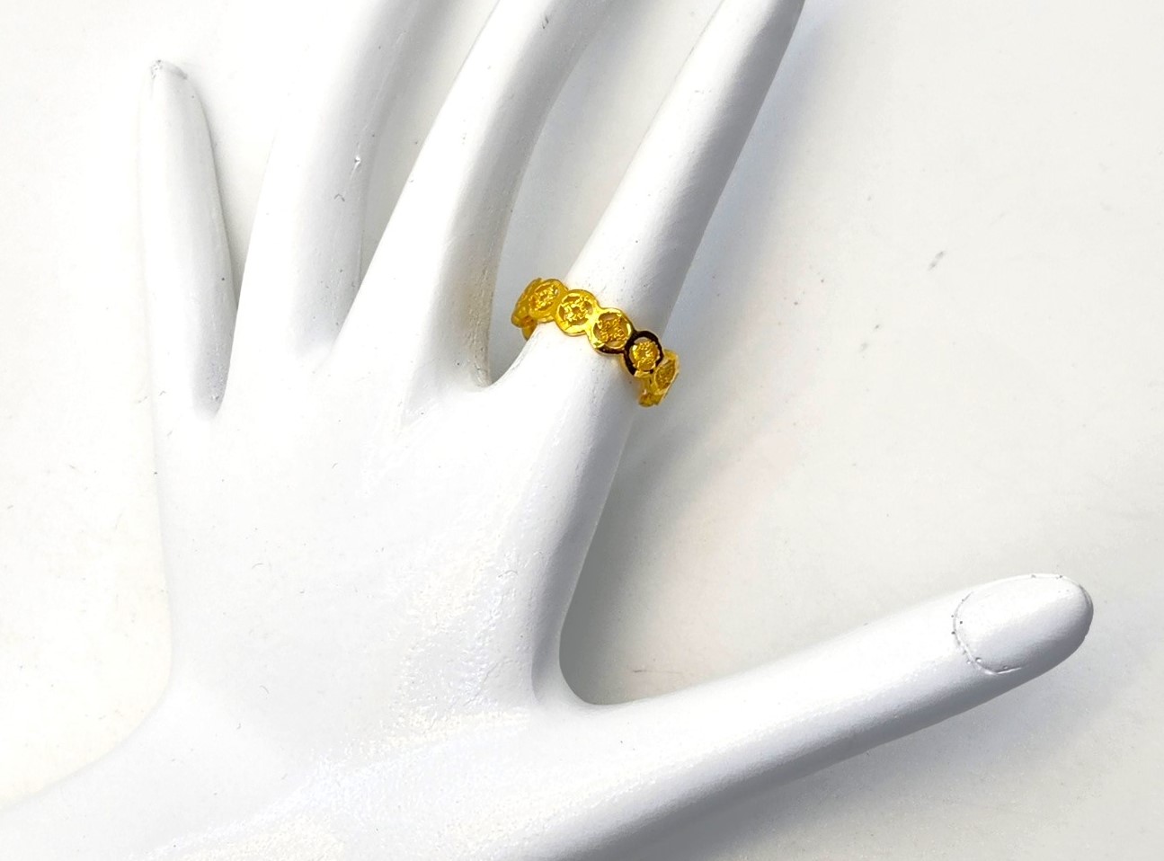 동그라미 우대 안 샌딩으로 처리된 별 장식이 매력적인데요? 순금 고유의 분위기까지 잘 표현해서 누가 보아도 순금이구나 알 수 있는 제품입니다. 어떤 손가락에 착용해도 돋보이는 존재감 있는 제품으로 추천드리고 싶어요^^