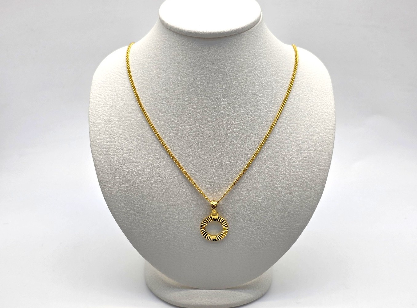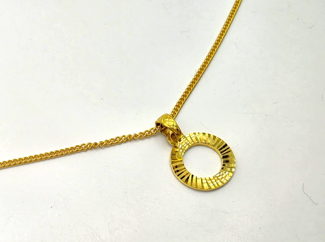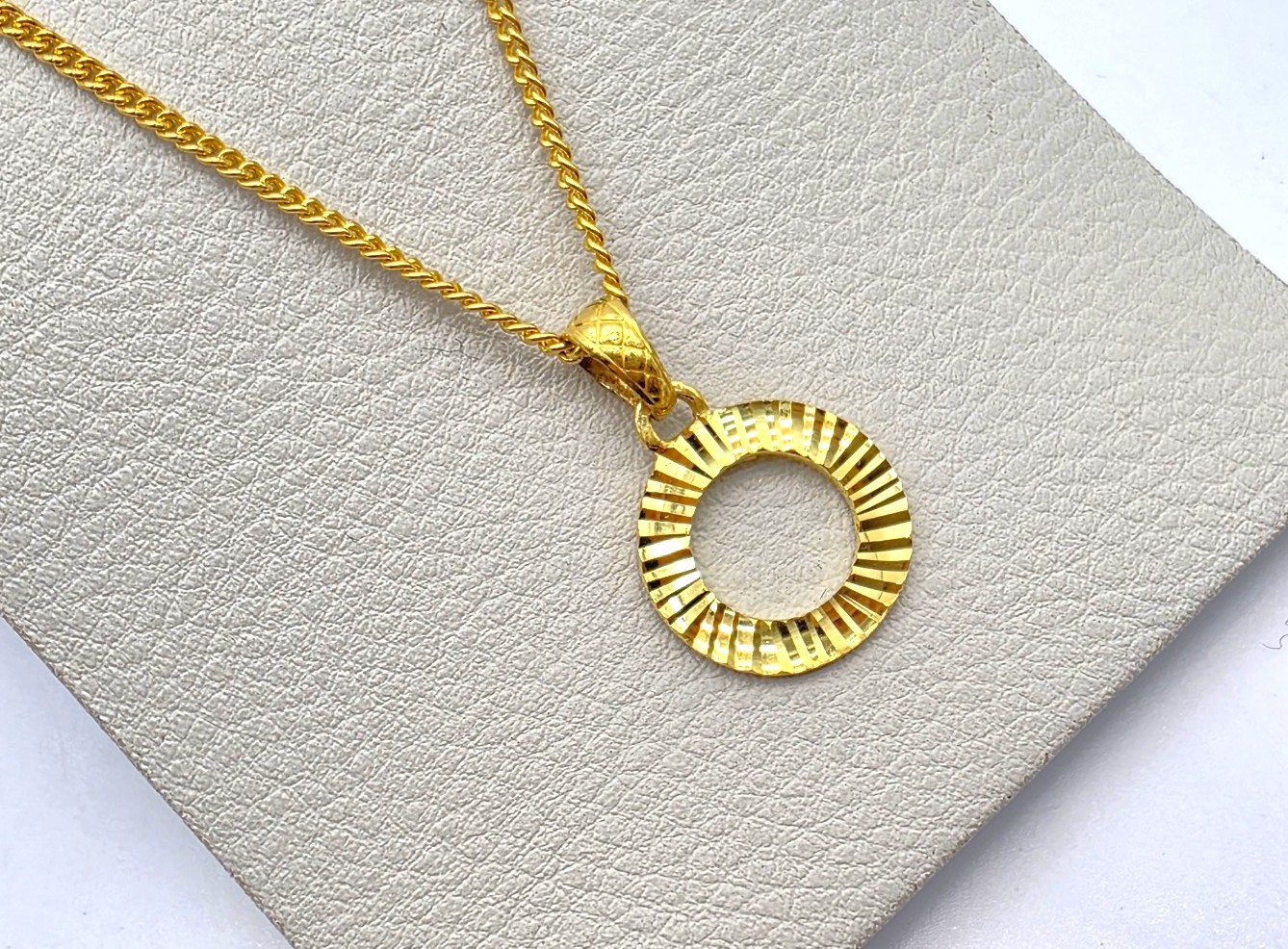 연출하기 좋은 순금 목걸이입니다. 펜던트 중앙의 빈 공간은