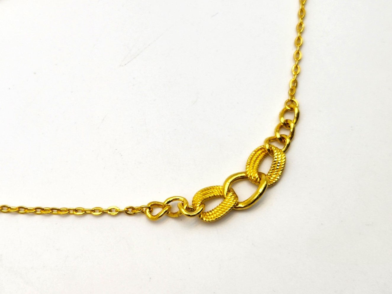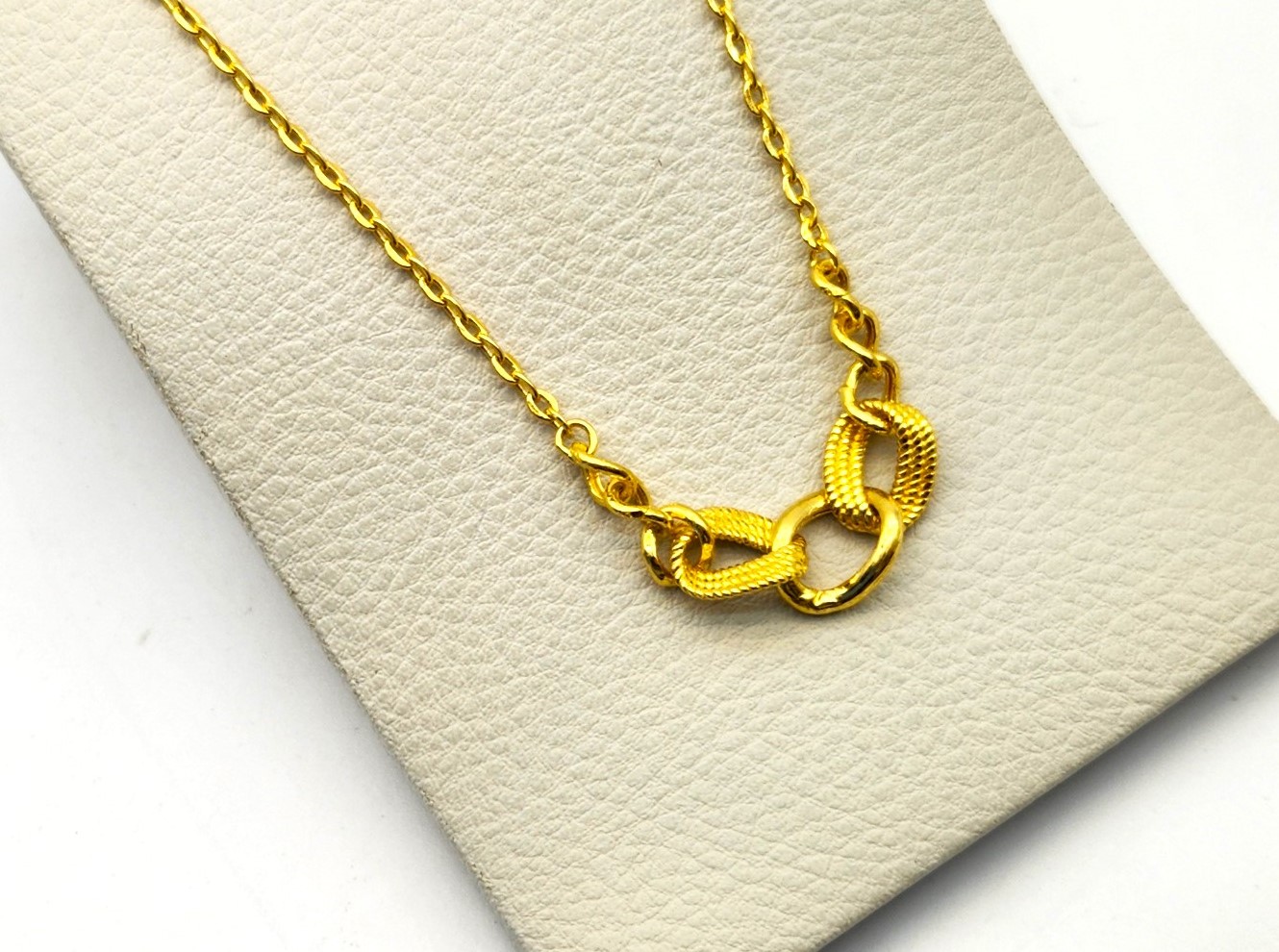 일체형 펜던트까지 떨어지는 디자인의 순금 목걸이입니다. 보통 목걸이의 경우 포커스가 펜던트 장식으로 초점이 맞추어지는데 오늘 준비한 제품의 경우 자연스럽게 이어지는 디자인이라서 그런지 목걸이 전체적으로 눈길이 가는 제품이에요