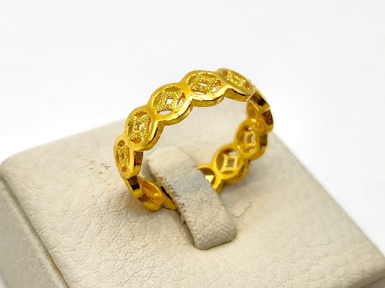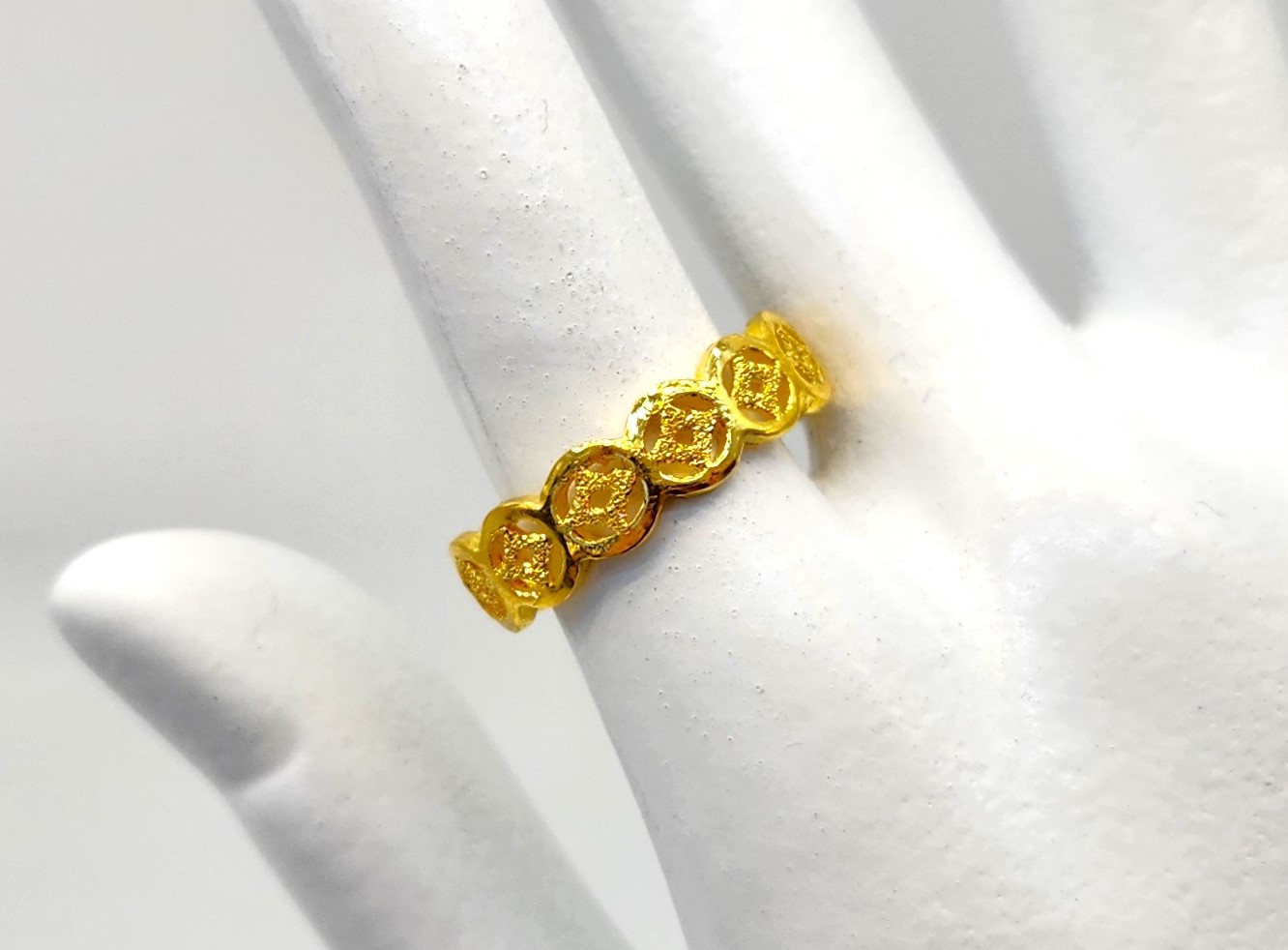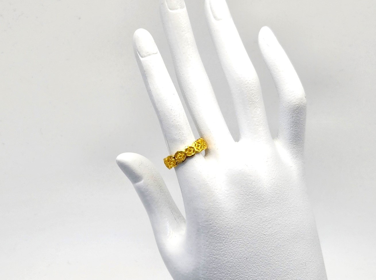 동그라미 우대 안 샌딩으로 처리된 별 장식이 매력적인데요? 순금 고유의 분위기까지 잘 표현해서 누가 보아도 순금이구나 알 수 있는 제품입니다. 어떤 손가락에 착용해도 돋보이는 존재감 있는 제품으로 추천드리고 싶어요^^