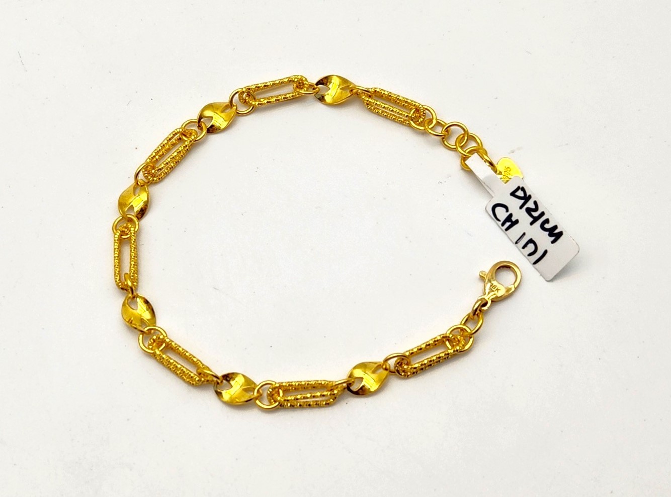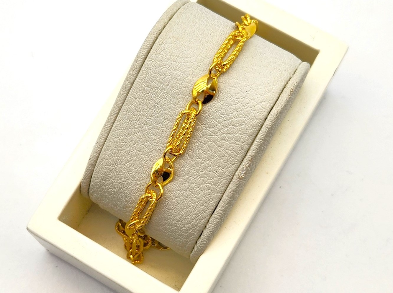 선호하신다면 5돈 중량도 같이 고민해보셔도 좋을 거 같아요^^ 오늘 준비한 제품 전체적인 디자인을 보시면 줄 형태로 만들어진 패턴 디자인의 순금 팔찌입니다. 이러한 제품들 특징이 호불호 없이 여성 고객님들께서 많이 선택하시는 제품이라는